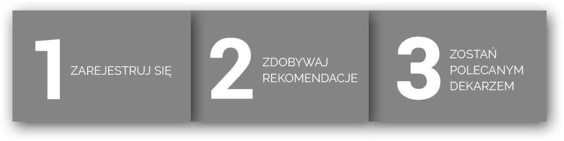 Po zakończonej usłudze odbierasz od inwestora pisemne potwierdzenie montażu dachu. Jeżeli inwestor jest zadowolony z jakości usługi podpisuje Twoje Polecenie. Następnie Polecenie przesyłane jest do portalu polecanydekarz.pl. W przypadku pozytywnej weryfikacji Twoja firmowa wizytówka jest publikowana w portalu, a kolejne Polecenia są dopisywane do Twojego konta.